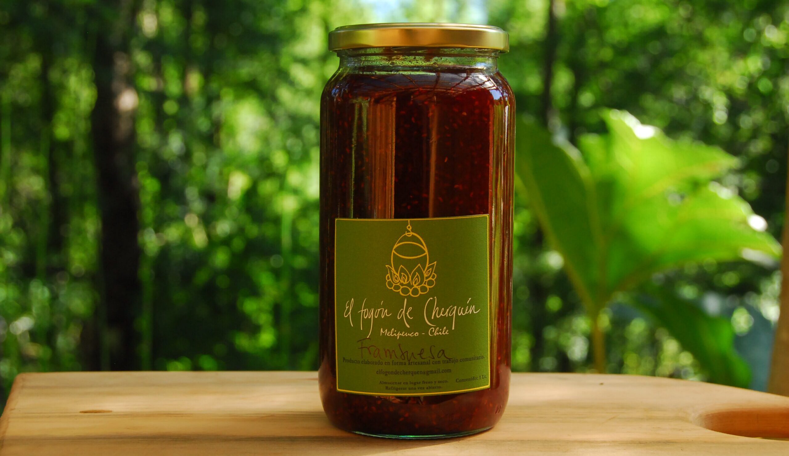 Irresistible mermelada de frambuesas, elaborada con frambuesas de Melipeuco. De sabor ácido y color intenso.